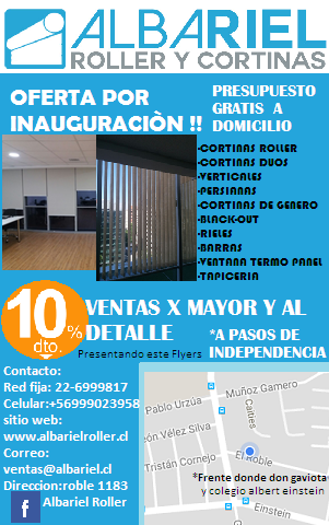 ALBARIEL ROLLER Y CORTINAS es una empresa nacional especializada en la fabricación y venta de cortinas roller las que son una solución para las temperaturas extremas. Ellas permiten que cada usuario pueda manejar gradualidades en el ingreso tanto del frio como del calor de acuerdo a cada necesidad. Nuestras cortinas roller de última generación contienen los más altos standares internacionales lo que da como resultado una eficiente reducción solar.