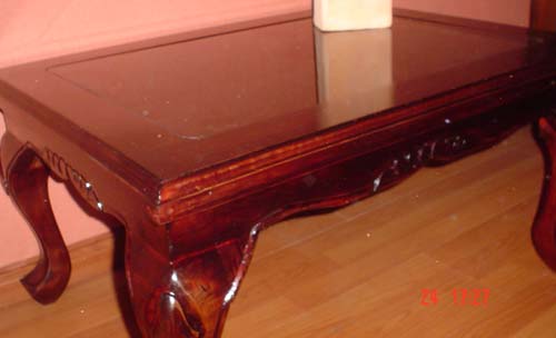 Mesa de centro tallada con vidrio, madera nativa (rauli), medidas |