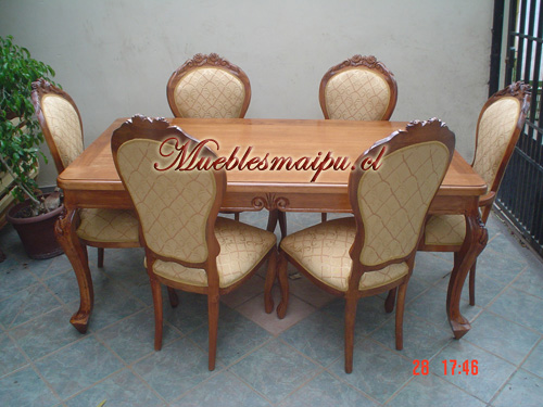 Comedor normando 4 sillas + 2 comensales Mesa mide 1.60 x cms.0,90 cms. , madera rauli sillas con resortes, todo tarugado y encolado |