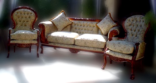 JUEGO SOFA APLICACIONES MADERA MAS 2 POLTRONAS