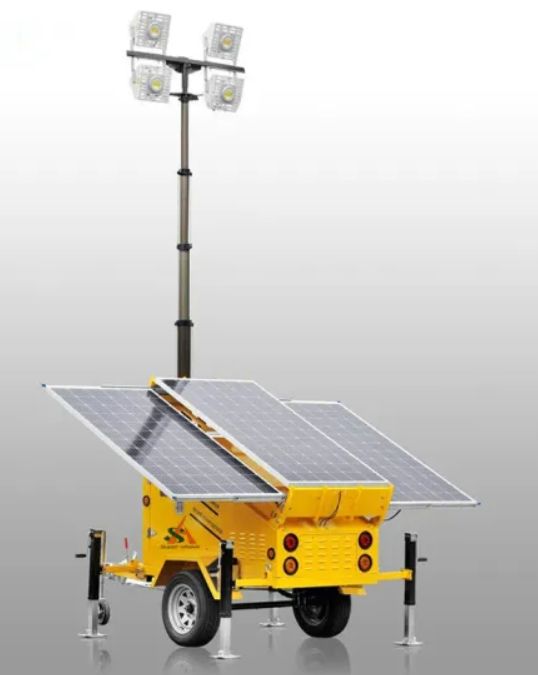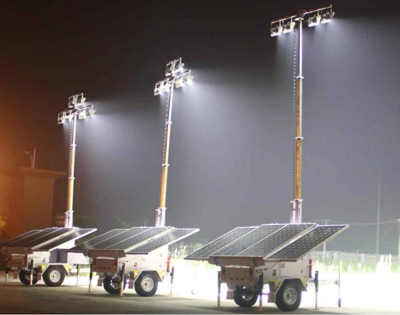 Esta torre de luz solar proporciona la iluminación exterior brillante sin los costes del ruido, la contaminación o el funcionamiento de una torre de luz de diesel tradicional
